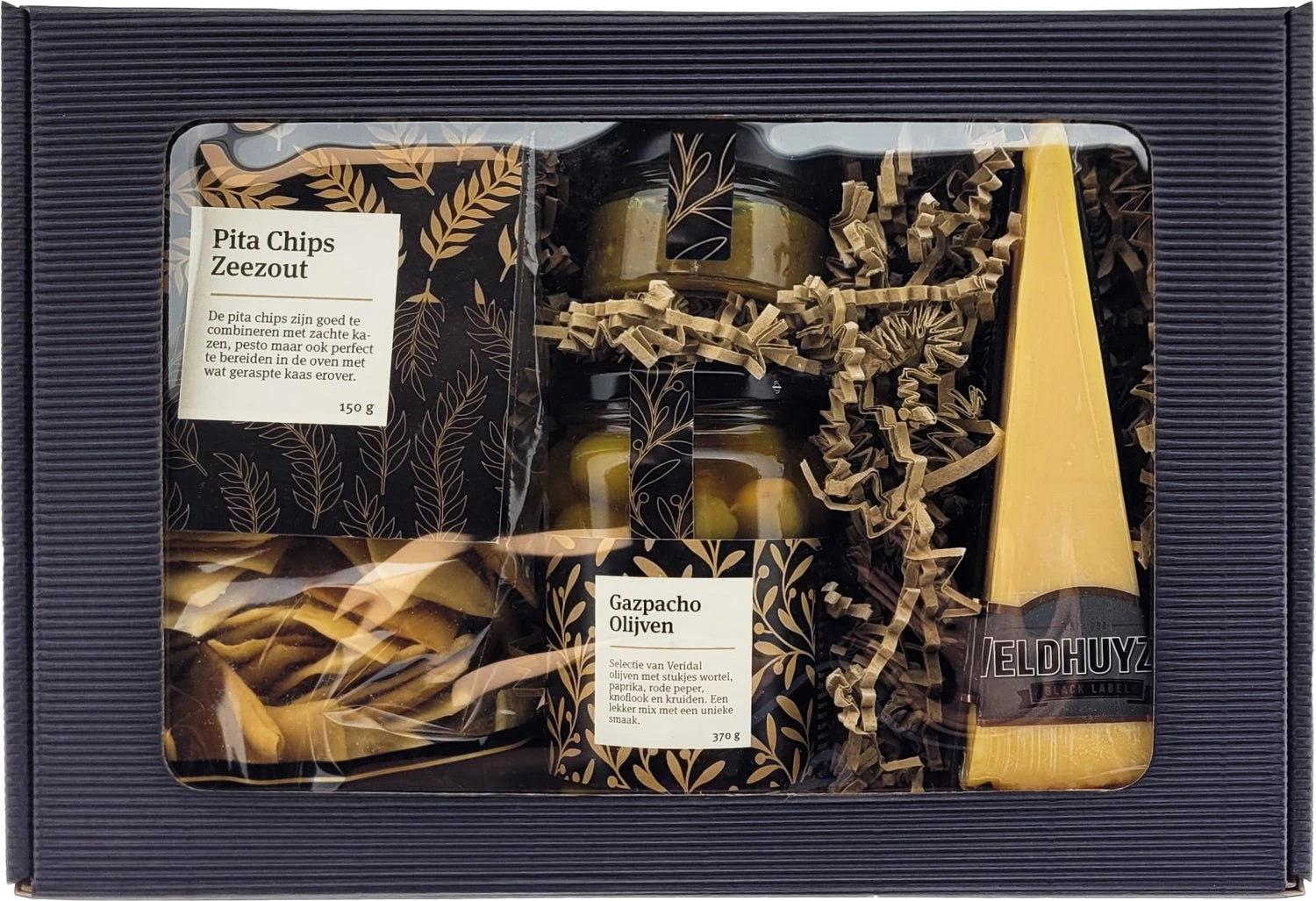 Een cadeaupakket uit de collectie van Abdel’s Deli met heerlijke borrelproducten.