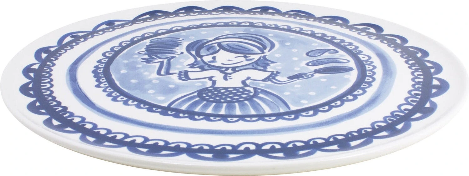 Dit pannenkoekenbord is gemaakt met een knipoog naar het oud-hollandse Delfts blauw servies. Natuurlijk ook geschikt om je pizza van te eten of om toastjes op te serveren.