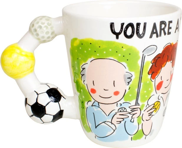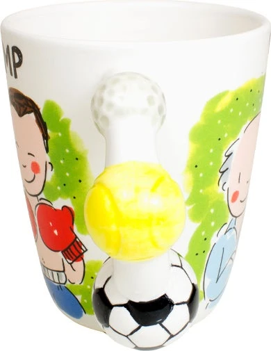 Voor alle sportieve vaders is deze beker een super leuk cadeau! In het oor van de beker zitten verschillende sportballen verwerkt, waaronder een voetbal en tennisbal.