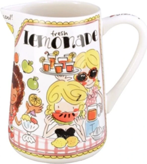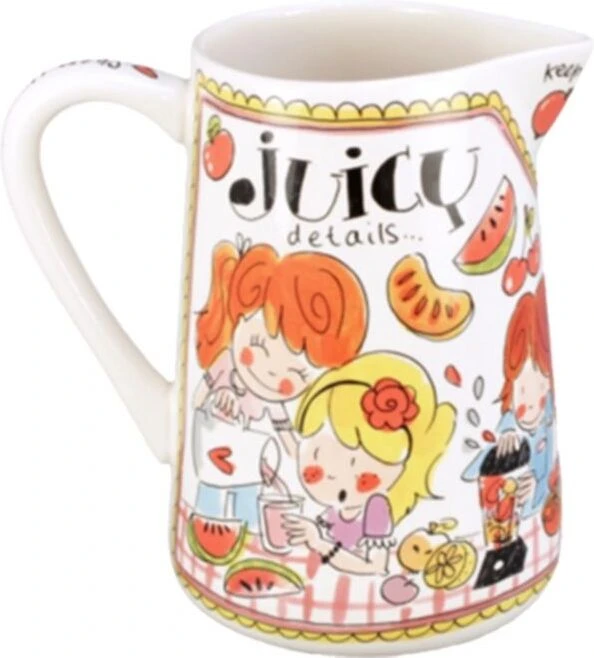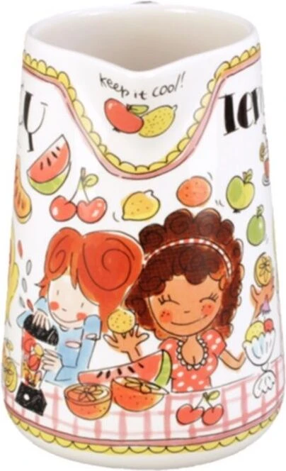 Deze vrolijke en kleurrijke kan maakt jouw tafel nog gezelliger! De opvallende en kleurrijke illustraties kenmerken de Even bijkletsen lijn van de twee vriendinnen uit Amsterdam: een servieslijn met een knipoog. Vul de kan met jouw favoriete limonade of sap!