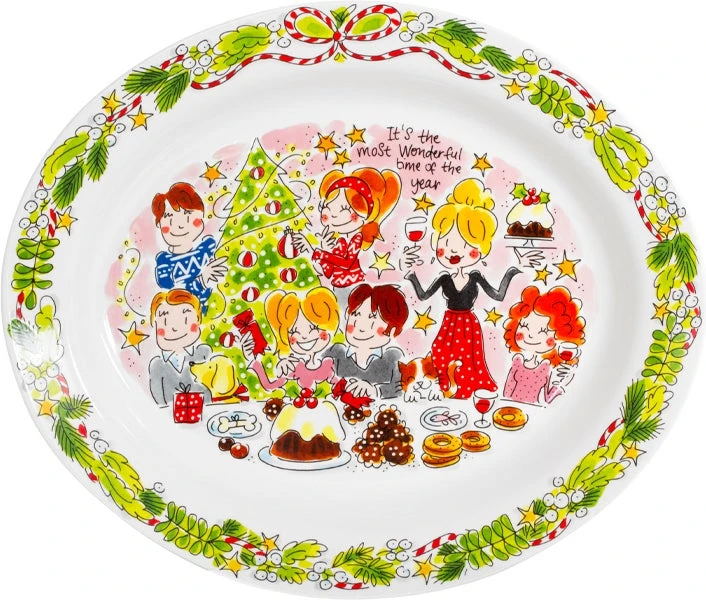 Kom in de gezellige winterse kerstsfeer met deze schaal. Deze schaal maakt de tafel compleet tijdens kerst. De schaal heeft als rand een groene kerstkrans met een rode strik, deze kerstkrans komt op de andere producten ook terug. Dus deze schaal is leuk om te combineren met de andere kerst items. Op de schaal staan allerlei verschillende Blond tekeningen, die je helemaal meenemen in de winterse kerstsfeer. Op de schaal staat ook de tekst: ‘It’s the most wonderful time of the year’. Leuk voor op je eigen kersttafel of om cadeau te geven aan je vriendinnen.