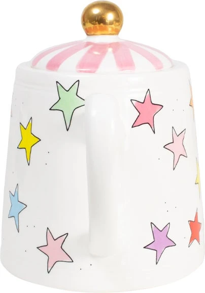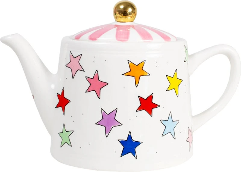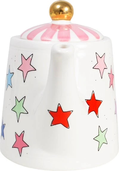 De collectie Even Bijkletsen is uitgebreid! Dit keer niet met de kenmerkende illustraties, maar met kleurrijke sterren en strepen. Dit servies is leuk te combineren met het reguliere Even Bijkletsen servies of juist ook leuk om te combineren met een andere collecties. Deze theepot past bij zowel de streep bekers als bij de sterren. Echter kan je deze theepot ook gewoon combineren bij je huidige servies van Blond Amsterdam.
