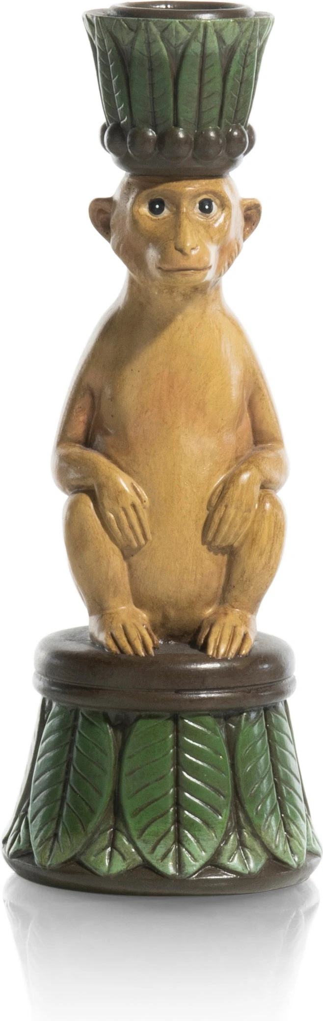 Met deze hippe kandelaar uit de collectie van Coco Maison maak je het in huis wel heel gezellig. Een extra lichtpuntje in huis is altijd welkom als de avond valt, maar deze sfeermaker zal overdag ook zeker niet onopgemerkt blijven door het leuke design met exotische twist. De kandelaar is gemaakt van polyresin en geeft een trendy uitstraling aan je interieur. De kandelaar in de vorm van een aap bevat de kleuren goud en groen. De afmetingen van dit leuke model zijn 3 x 3 x 17 cm.
