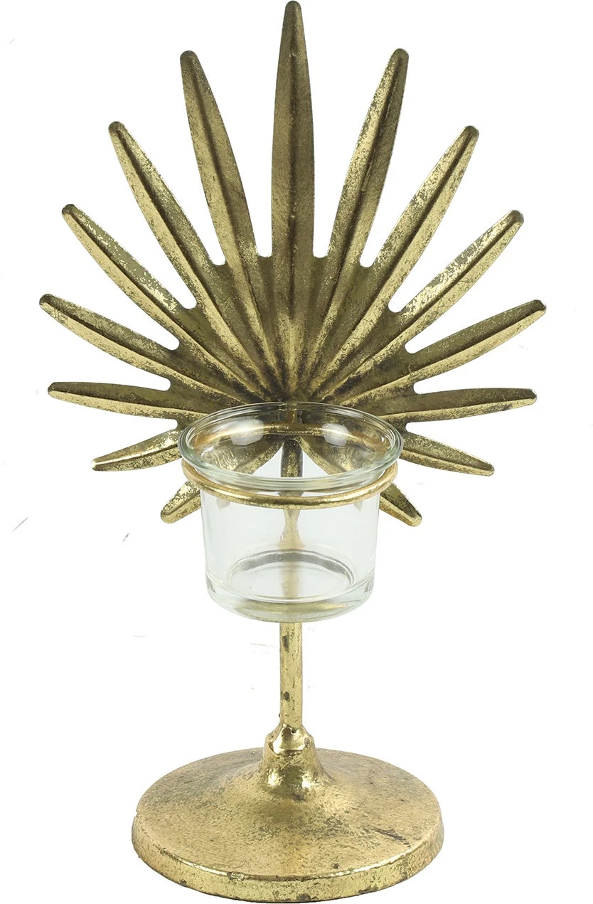 Waxinelichthouder Soleil van Countryfield is een kaarsenhouder op stok met een prachtige gouden waaier als achtergrond. Deze hippe standaard biedt ruimte aan 1 waxinelichtje. Soleil is verkrijgbaar in verschillende afmetingen.