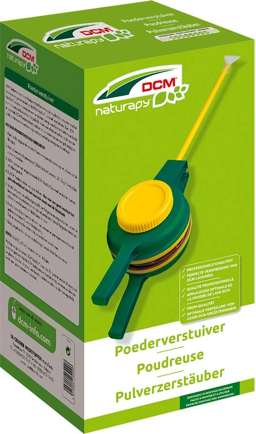 Deze poederverstuiver is ideaal voor het verstuiven van gesteentemelen, zoals DCM Vitasilica Lavameel, over de planten in de tuin.