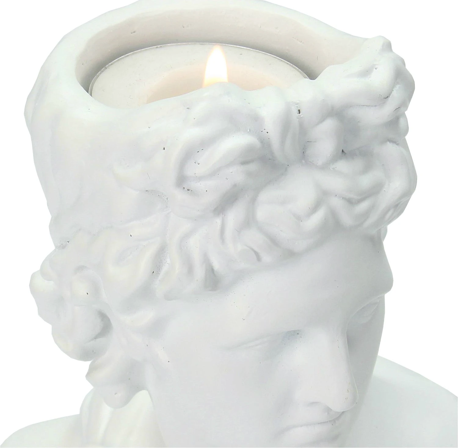 Met deze hippe kandelaar van het merk HD Collection maak je het binnen wel heel gezellig. Een extra lichtpuntje in huis is altijd welkom als de avond valt, maar deze sfeermaker zal overdag ook zeker niet onopgemerkt blijven door het bijzondere design met historische twist. De kandelaar is gemaakt van polyresin in de kleur wit en geeft een trendy uitstraling aan je interieur.