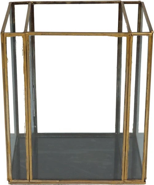 Met wat sfeerverlichting maak je het tijdens een avond in huis extra gezellig. Doe bijvoorbeeld een mooie kaars in dit windlicht uit de collectie van HD Collection. Het windlicht is gemaakt van metaal en glas en valt op door zijn mooie, strakke design. Mooi en zeer passend in jouw stijlvolle interieur! Het windlicht is verkrijgbaar in verschillende maten. De afmetingen van dit bronzen model zijn 18 x 13 x 21 cm.