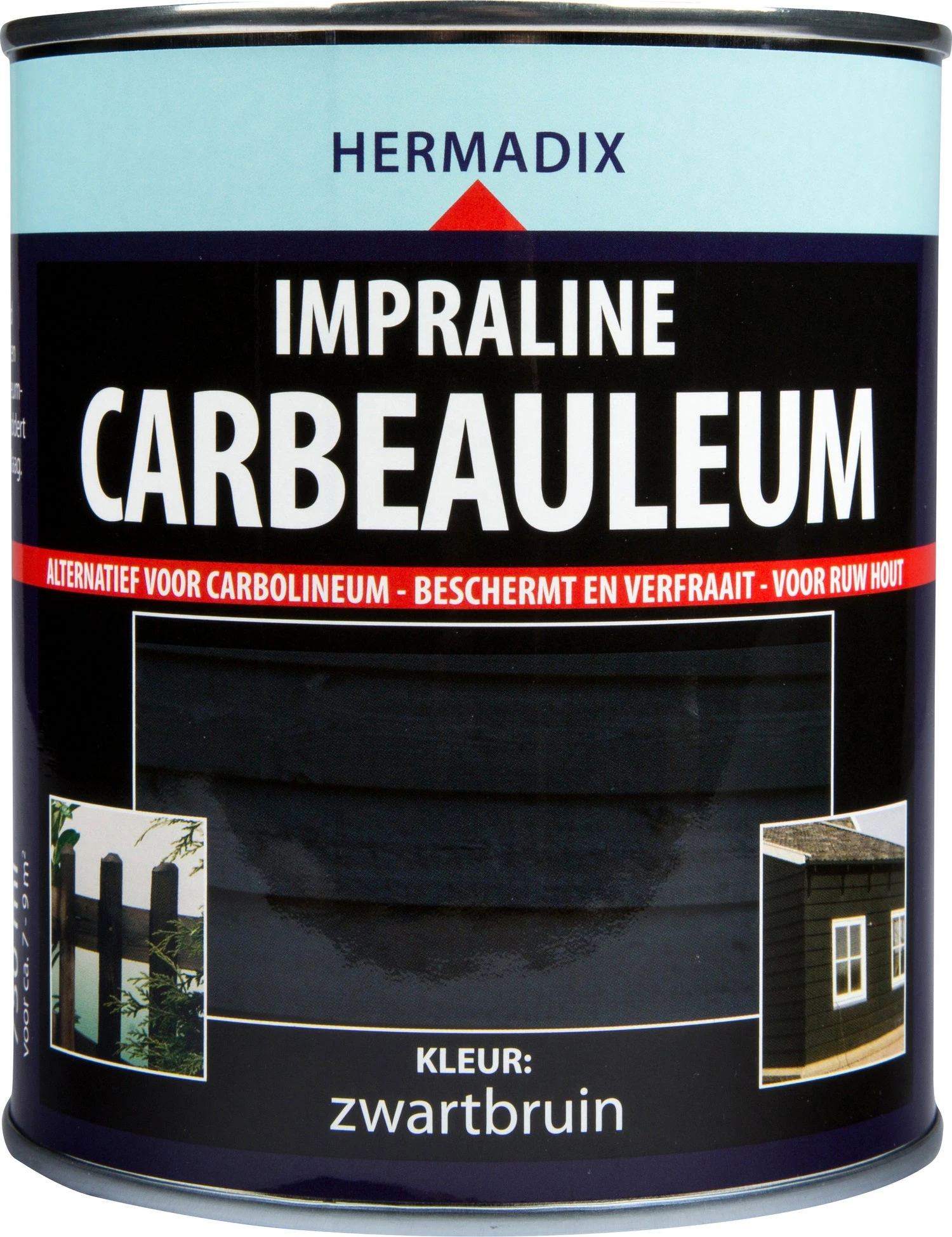 Impraline Carbeauleum is een impregnerend product, zeer geschikt voor het overschilderen van oude carbolineumlagen. Oude carbolineumlagen dienen minimaal 5 jaar oud te zijn. Bladdert niet, geeft een zijdematte, zwartbruine eindlaag. Dringt diep in het hout. Bescherming voor nieuw hout of eerder met carbolineum behandeld hout. Uitstekend geschikt voor ruw gezaagd of ongeschaafd (evt. geïmpregneerd) zachthout. Geschikt voor hekken, steigers en schuren.