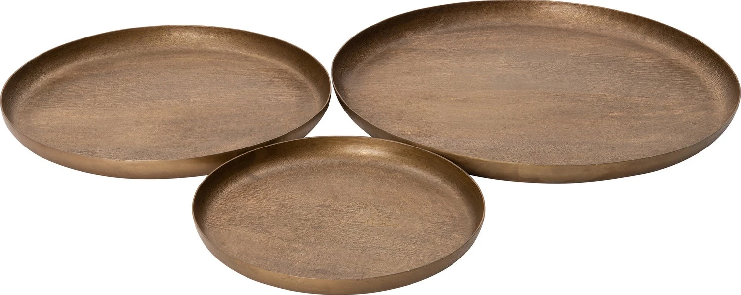 Het Kano dienblad uit de collectie van Intratuin fleurt jouw interieur helemaal op! Ideaal als je houdt van een sfeervolle uitstraling! Het blad is gemaakt van aluminium en heeft door de antieke afwerking een mooie gouden kleur. Gebruik het om drankjes op te serveren of als onderzetter voor wat losse decoraties. Door de omhoogstaande rand is alles goed beschermd. De diameter is 40 cm en de hoogte is 3 cm.