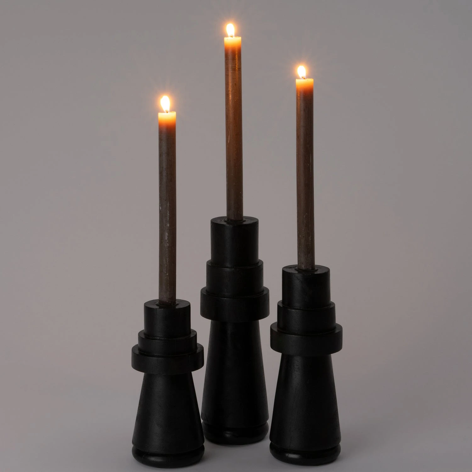 Wil je graag jouw woonkamer op een subtiele manier stylen, dan is deze kandelaar Vivien uit de collectie van Intratuin perfect voor jou. Deze kandelaar is zwart. Hierdoor is deze kandelaar makkelijk te combineren en past het perfect bij iedere stijl. Het materiaal waarvan deze kandelaar is gemaakt is hout en dus is dit model niet breekbaar. Dat is handig als je bijvoorbeeld huisdieren of kleine kinderen in huis hebt. De afmetingen zijn 10 x 3 x 7,5 cm. Deze kandelaar is geschikt voor tafelkaarsen.