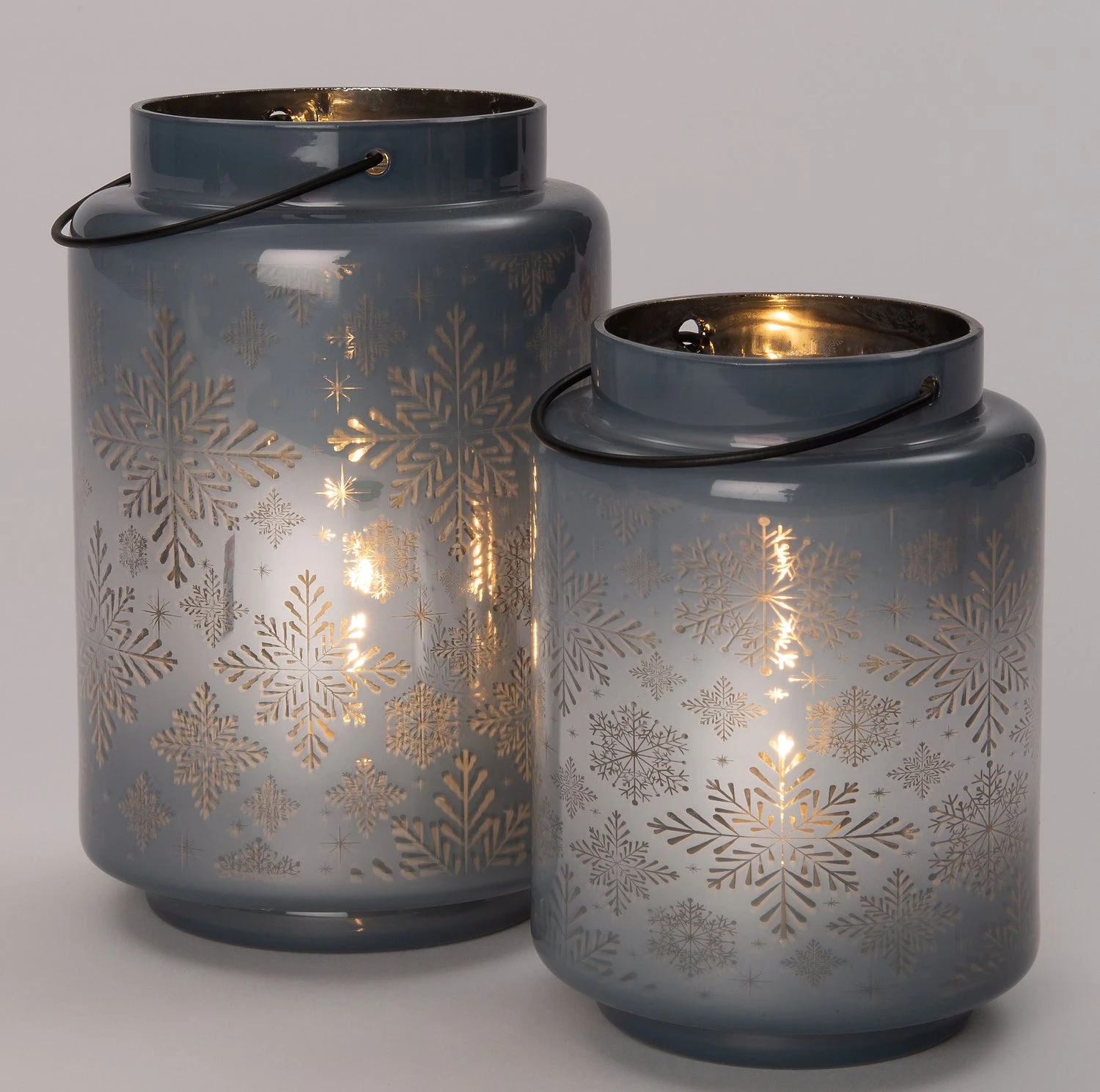 Intratuin lantaarn Sneeuwvlokken Blauw Met 1 LED Lampje Warm Wit D 14,2 H 21 Cm