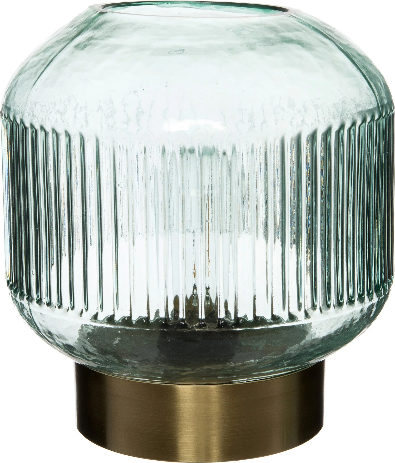 Een tafellamp is een eenvoudige manier om wat extra warmte en gezelligheid op tafel te brengen. Zodra het begint te schemeren is het fijn om wat meer licht in de kamer te brengen en met kleine lampen kun je specifieke plekken accentueren. De lichtbron in dit exemplaar is omgeven met glas, waardoor het licht subtiel en warm valt. Zo bewaar je de rust en creëer je tegelijkertijd een intieme sfeer. Het glas van deze lamp is gegolfd en als de lamp aan staat, ontstaat er een tekening op de ondergrond. De lamp is strak en stijlvol ontworpen en is daarom ook overdag een echte sfeermaker. De tafellamp is gemaakt van blauw glas. De lamp is verkrijgbaar diverse andere kleuren.