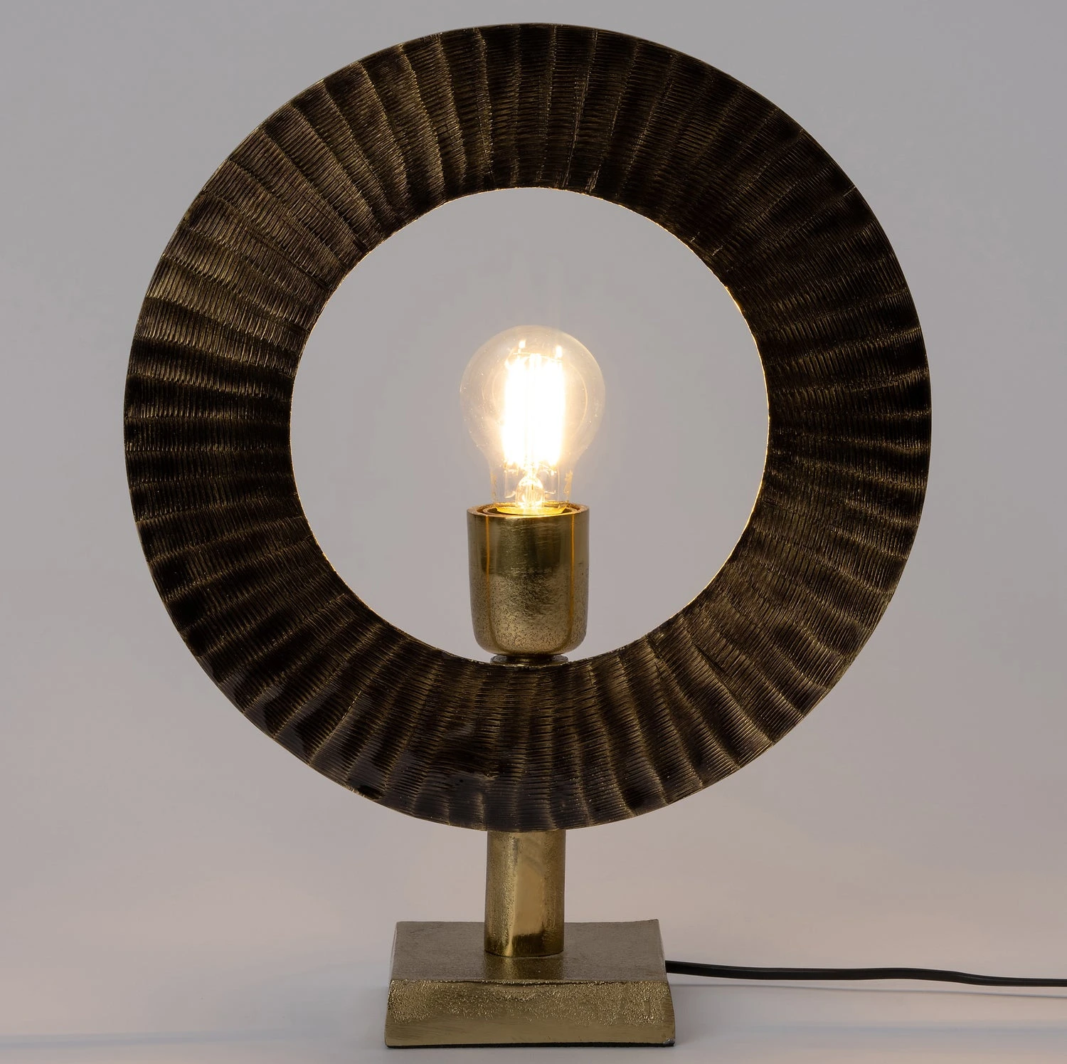 Met deze tafellamp Ebe uit de collectie van Intratuin haal je extra gezelligheid in huis. Zet de tafellamp op een mooie plek neer en geniet van het warme licht en de sfeervolle uitstraling. Ideaal om een extra lichtpunt aan te brengen in een kast, salontafel of nachtkastje. Deze leuke lamp heeft een gezellige uitstraling en is daardoor gemakkelijk te verplaatsen. De lamp is gemaakt van metaal in ovale vorm en goud van kleur. Dit model is verkrijgbaar in diverse maten. De diameter van dit model is 45 cm met een hoogte van 55,5 cm.