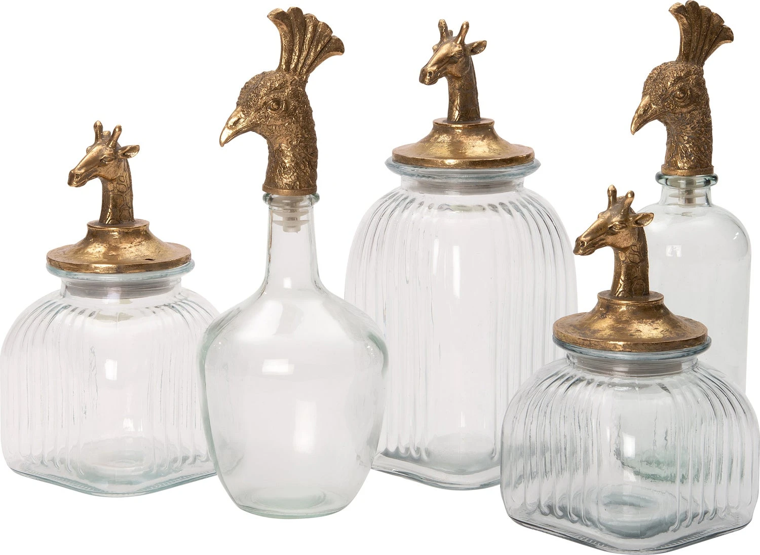 De Intratuin voorraadpot met een moderne en gouden twist! Want de pot is gemaakt van mondgeblazen glas en afgewerkt met een prachtige gouden deksel in de vorm van een pauw. Maak een plekje vrij in de keuken naast je andere voorraadpotten. Stijlvol en sophisticated! Ook eventueel te gebruiken als vaas. Verkrijgbaar in een andere vorm en met een giraffe kop. De afmetingen van dit exemplaar zijn 11,5 x 11 x 38,5 cm.