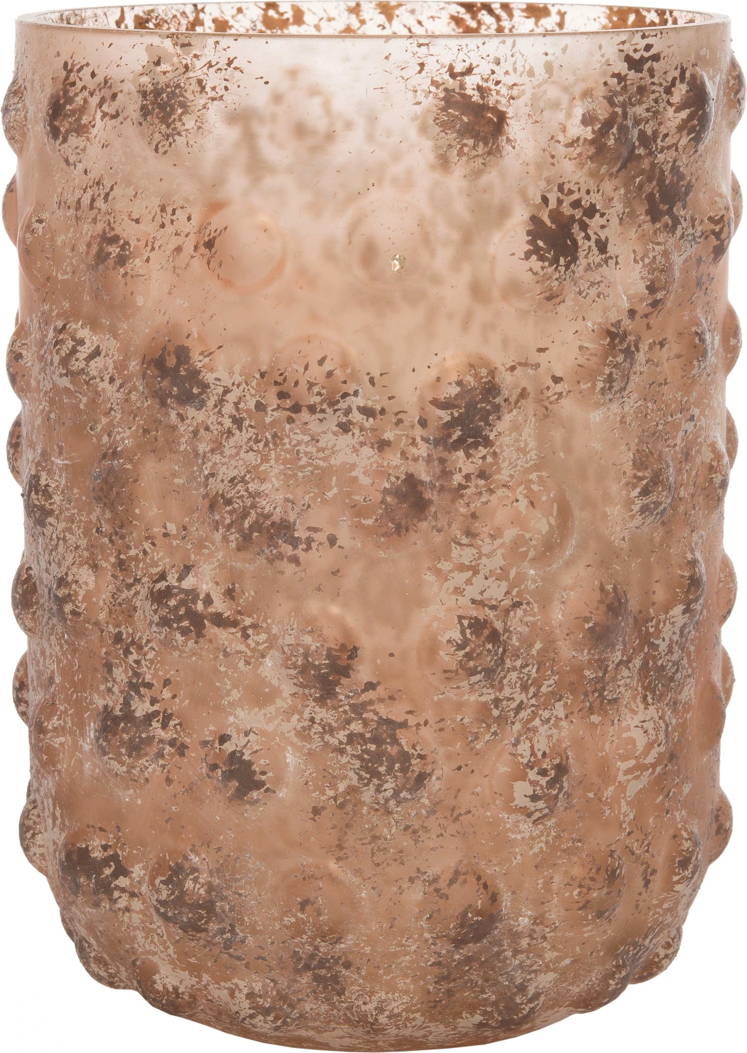 Creëer sfeer en warmte in huis met de waxinelichthouder Henk van Intratuin. Dankzij de unieke vormgeving is de waxinelichthouder een echte blikvanger in jouw interieur en is bij het branden ook nog eens extra sfeervol. Zowel door de kleursamenstelling als door de gebruikte techniek zal deze waxinelichthouder zeker niet onopgemerkt blijven. De waxinelichthouder is vervaardigd uit glas en heeft een subtiele crèmige kleur. De waxinelichthouder heeft een studs patroon in combinatie met een gevlamde afwerking wat over de hele waxinelichthouder terug komt. De waxinelichthouder heeft een diameter van 13 cm en een hoogte van 18 cm.