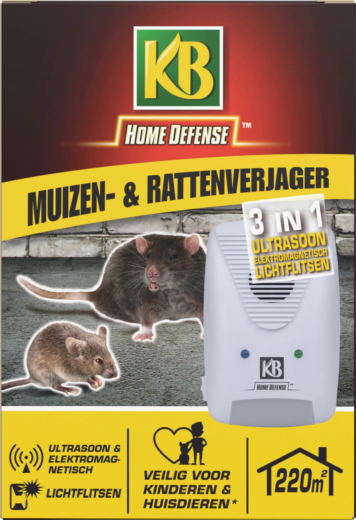 Deze KB Muizen- en Rattenverjager combineert ultrasoon, elektromagnetisch en lichtflitsen met elkaar om muizen en ratten te verjagen.