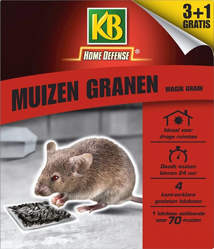 Met behulp van KB Muizen Granen Magik Grain bestrijd je effectief muizen in droge ruimtes zoals zolders, plafonds of in een garage. Wanneer een muis eenmalig van de granen eet is dit dodelijk. Hierdoor is KB Muizen Granen Magik Grain ook geschikt voor de bestrijding van een groot aantal muizen.