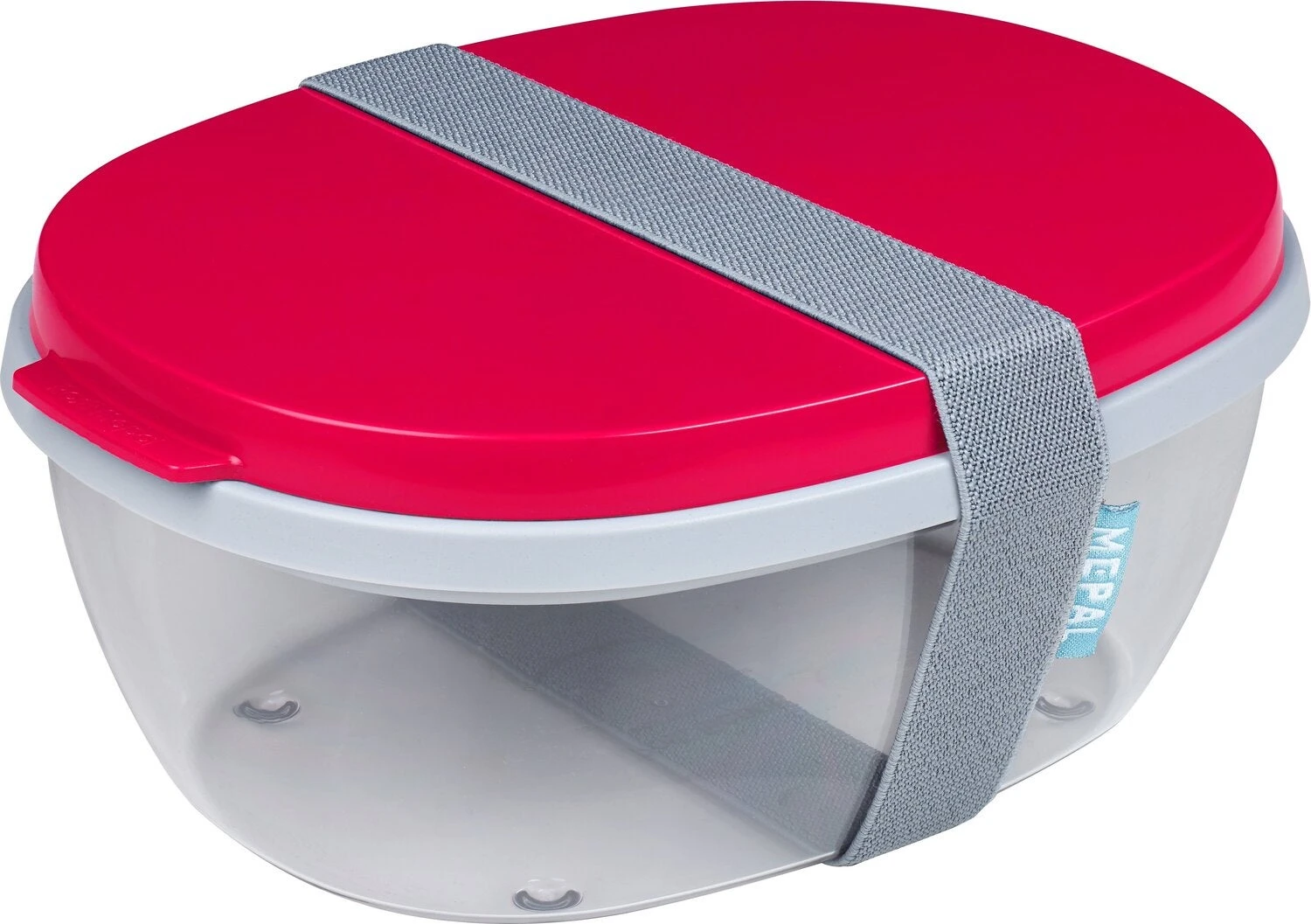 Deze saladbox Ellipse van Mepal is groot genoeg voor een (maaltijd)salade. De transparante box met rode deksel heeft voldoende ruimte om de salade op het moment van eten te mengen. Het compartiment biedt plaats aan brood of bestek en in de kleine mini box worden dressings of pijnboompitjes meegenomen. De saladbox Ellipse is vrijwel onbreekbaar en mag in de vaatwasser.