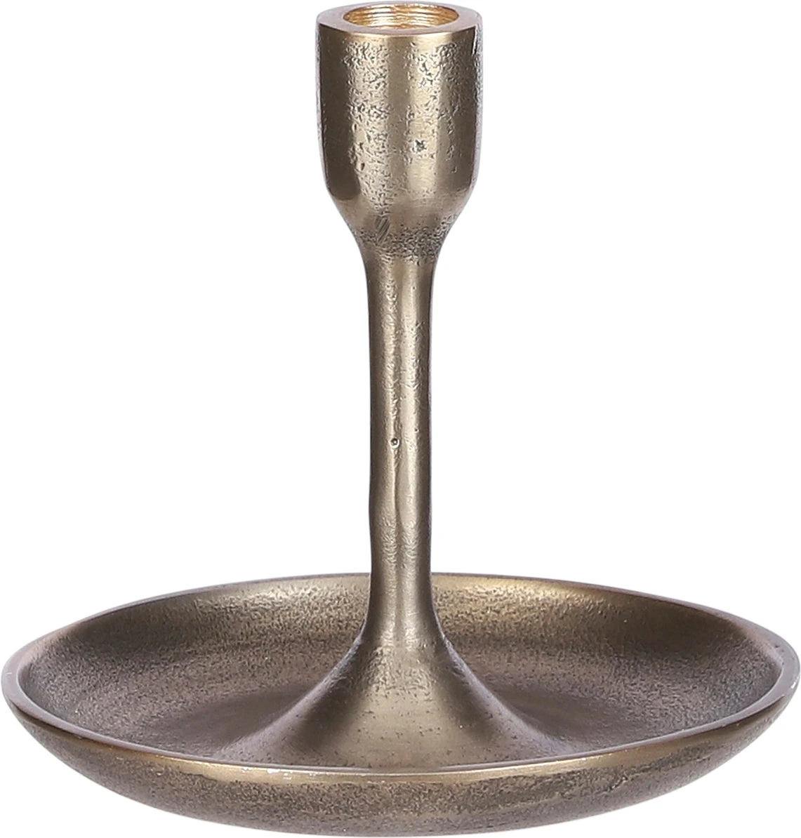 Maak het in huis gezellig met deze Pacific kandelaar uit de collectie van Mica Decorations. De kaarsenhouder is gemaakt van aluminium en heeft een afwerking die de Indiase roots goed zichtbaar maken. De gouden kleur kan dit gevoel alleen maar versterken. Het handige schaaltje zorgt dat de kandelaar erg stevig staat en vangt tegelijk het overtollige kaarsvet op. De Pacific kandelaar is verkrijgbaar in verschillende kleuren en afmetingen. Dit model is goud en heeft een afmeting van H 14 x D 15 cm.