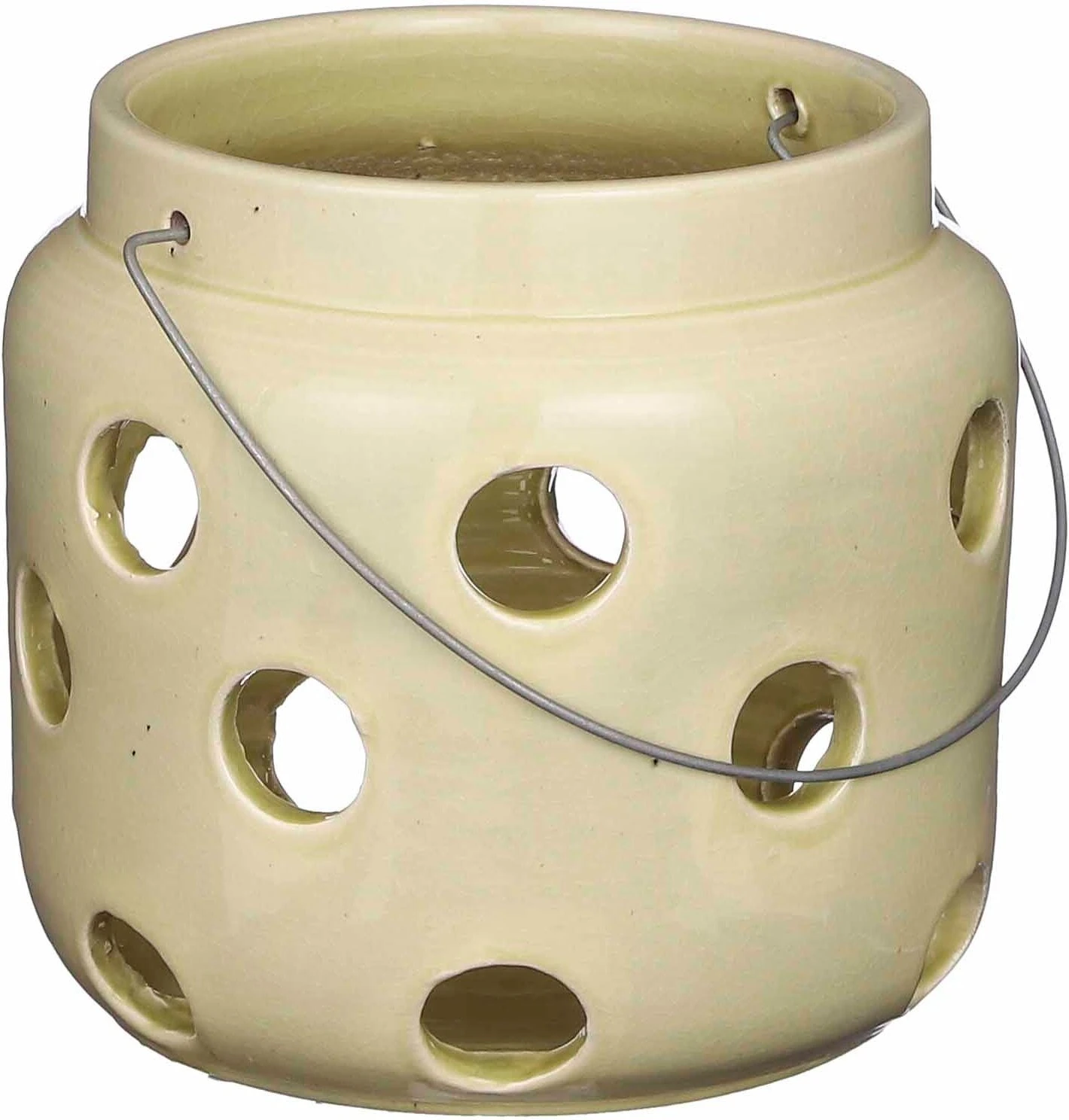 Met wat sfeerverlichting maak je het tijdens een avond in de tuin extra gezellig. Doe bijvoorbeeld een kaarsje in de Arena lantaarn van Mica Decorations. De lantaarn is gemaakt van hoogwaardige terracotta klei uit Portugal en valt op door het mooie design in een warme terra kleur. Mooi voor op elk terras of balkon! De ronde gaten geven het geheel een speelse uitstraling en zorgen voor een mooie verspreiding van het licht. Daarnaast kun je hem door het zwarte hengsel gemakkelijk verplaatsen. De Arena lantaarns zijn verkrijgbaar in verschillende kleuren en maten. Leuk om met elkaar te combineren! Dit terra kleurige model is 24 cm hoog en heeft een diameter van 26 cm.