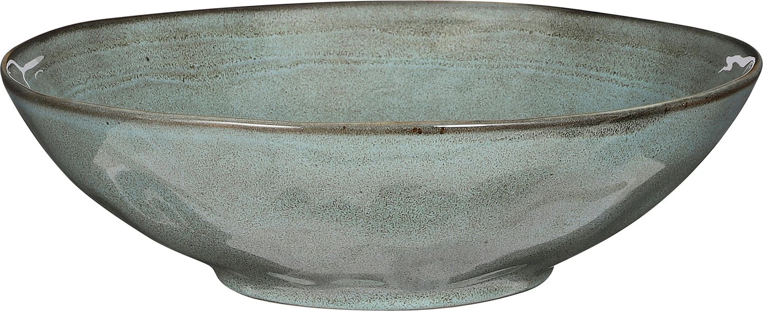 Keramieken schaal in een moderne grijsblauwe kleur. De schaal is handgemaakt en heeft een afmeting van H9 x Ø30,5 cm.
