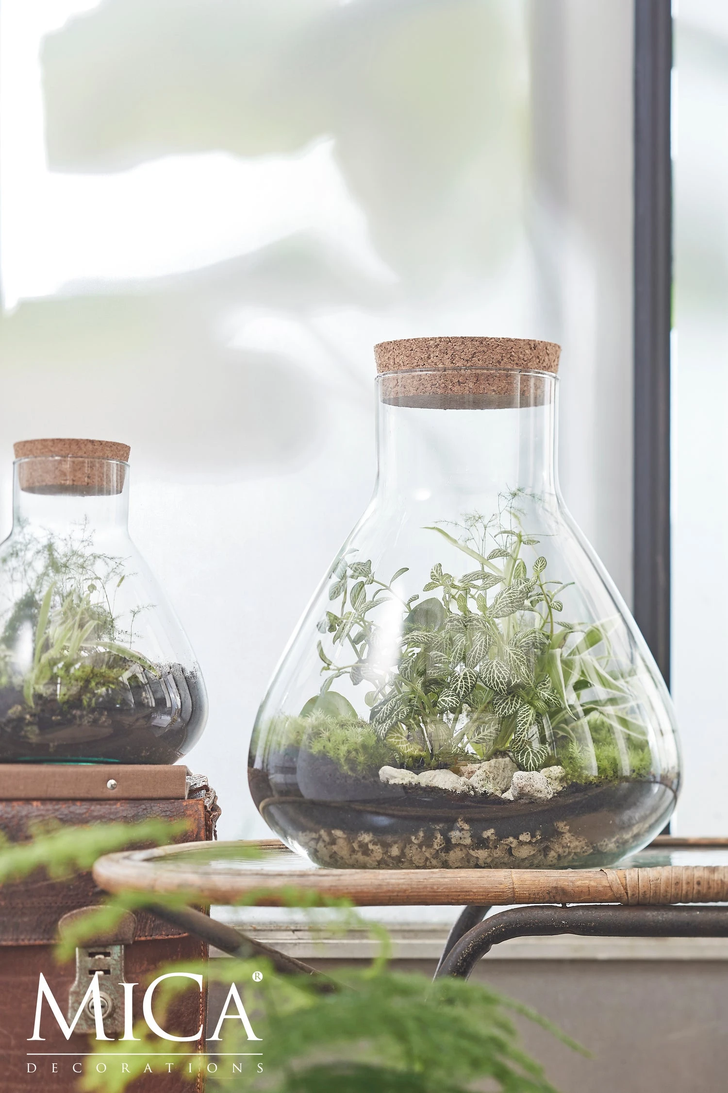 Vul deze prachtige pot Emily uit de collectie van Mica Decorations met hip groen en creëer zo een eigen mini-ecosysteem. Lucht en water worden hergebruikt, dus je hoeft geen water te geven. Easy does it! De diameter van de pot is 22,5 cm met een hoogte van 24,5 cm.