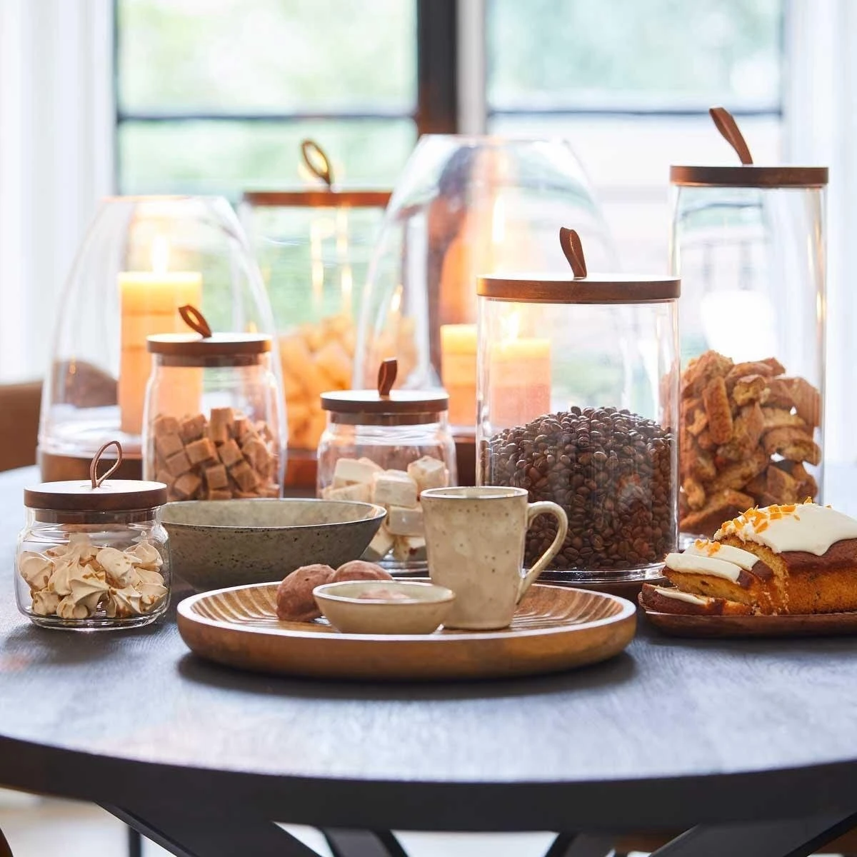 Maak een plekje vrij in de keuken voor de serie Pip voorraadpotten. Deze variant is van glas en heeft een acacia houten deksel met rubberen rand zodat de pot goed afsluit. Uit de bovenkant van het deksel steekt een lus en aan de onderkant van het deksel is het Riverdale logo uit het hout gefreest. Stijlvol en sophisticated!