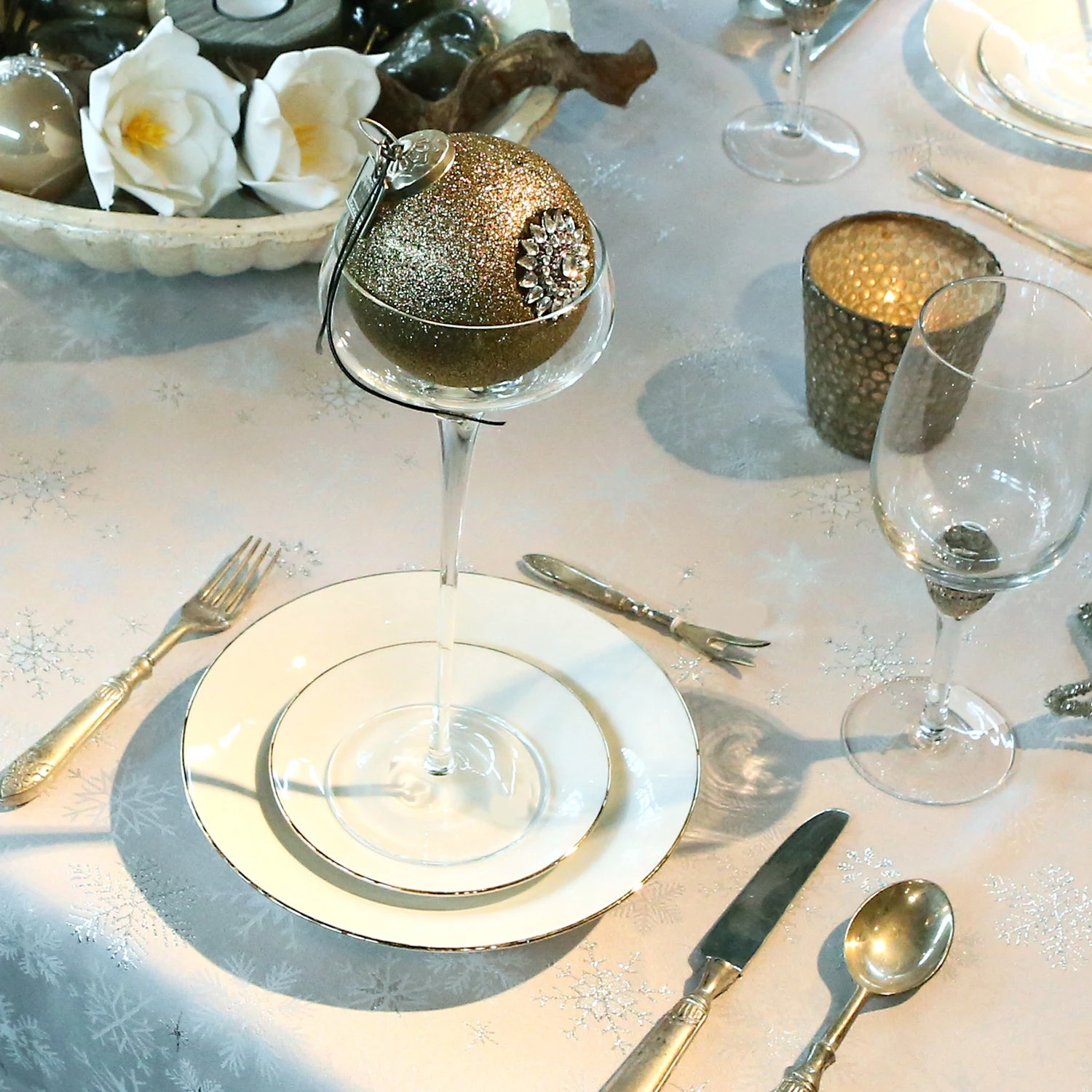 Het creëren van een gezellige en uitnodigende kersttafel is ieder jaar weer een terugkerend tafereel. Dit chique Crystal tafelkleed uit de collectie van Unique Living vormt de perfecte basis voor de aankleding van het kerstdiner. Het kersttafelkleed is gemaakt van polyester in warm ivoor en heeft een smaakvol sterren en sneeuwvlokken patroon met gouden glitters. Het feestelijke ontwerp zorgt voor een hoog siergehalte dat niet to much is. De neutrale kleur maakt het goed te combineren en gemakkelijk verder af te stijlen met leuke accessoires. Tafelkleed Crystal heeft de afmetingen 140 x 200 cm en is rechthoekig van vorm. Verkrijgbaar in diverse kleuren en maten. Aan tafel!
